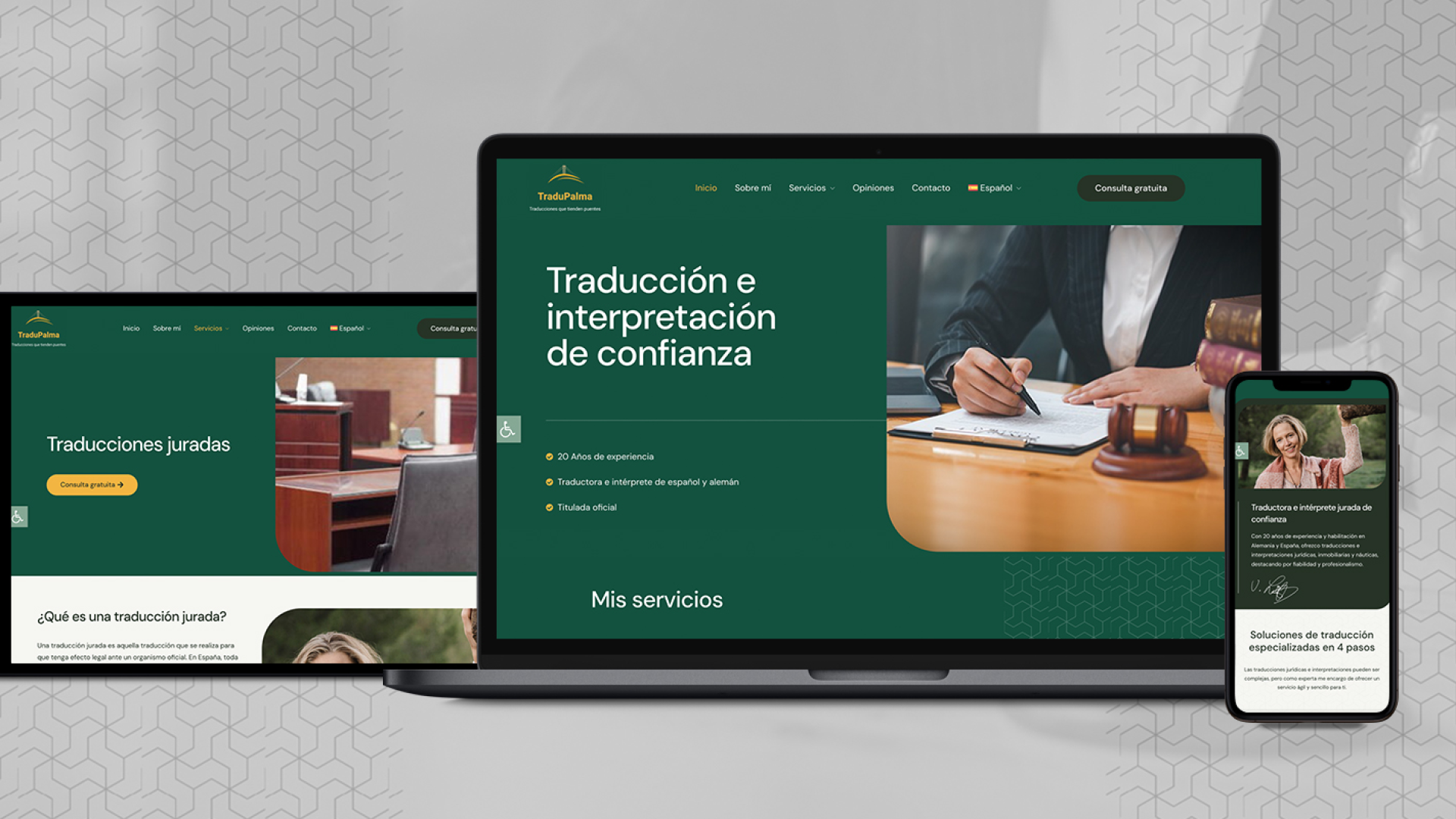 Tradu Palma opera en un contexto internacional, por lo que la web se ha creado en tres idiomas: español, inglés y alemán. Gracias a una arquitectura de navegación clara y una presentación de contenidos eficiente, los usuarios pueden acceder fácilmente a la información y encontrar el servicio que necesitan con rapidez.